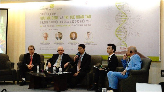 Ông Cao Anh Tuấn (cầm micro), cùng các diễn giả khác tại hội thảo của Genetica.