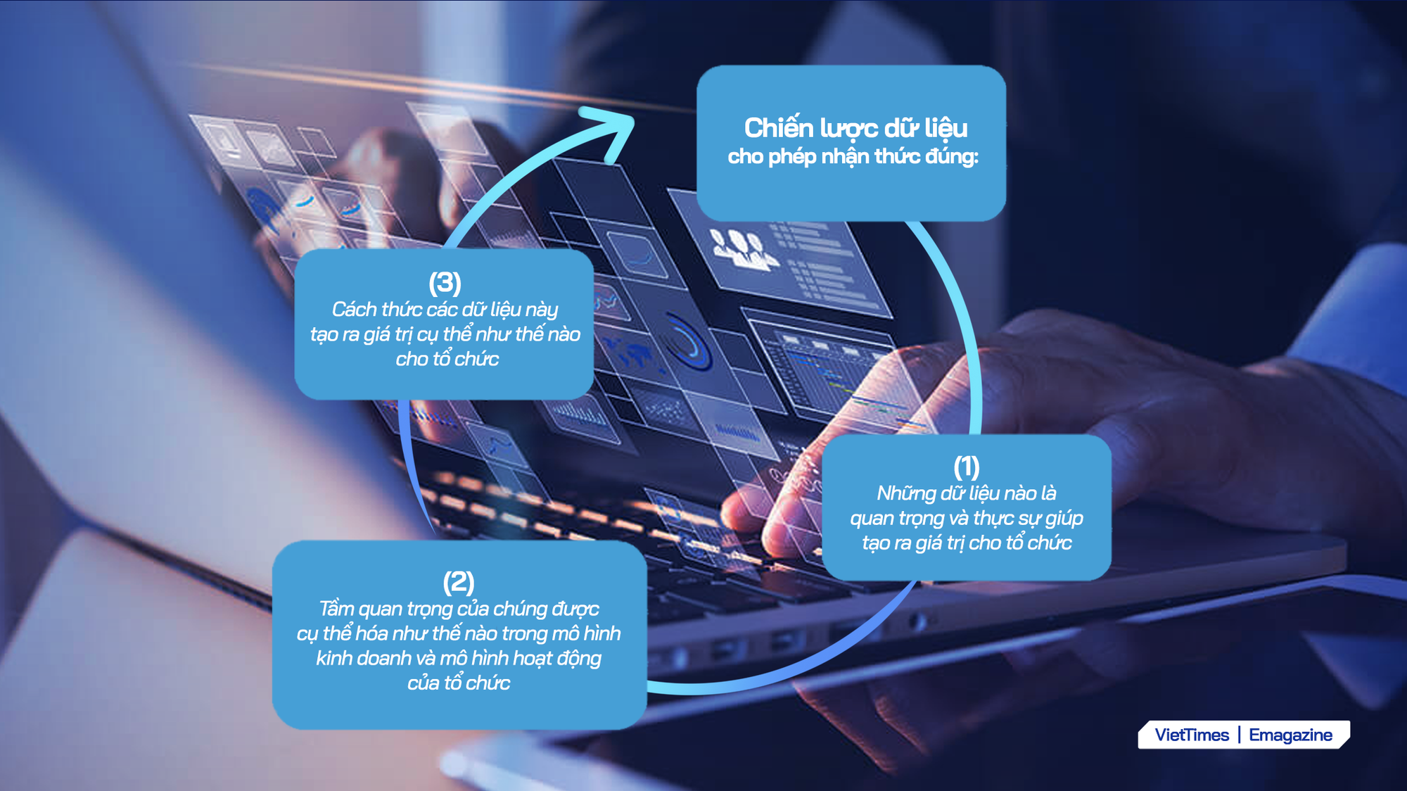 Chiến lược dữ liệu là một sự thể hiện hóa chiến lược phát triển của tổ chức thông qua dữ liệu, nó cho phép chúng ta nhận thức đúng được:
