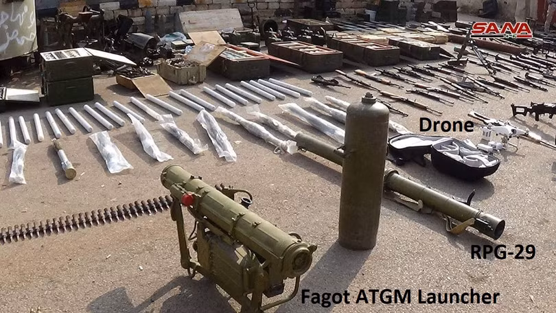 Các loại vũ khí chống tăng phát hiện được trên địa phận tỉnh Daraa. Ảnh minh họa: SANA.