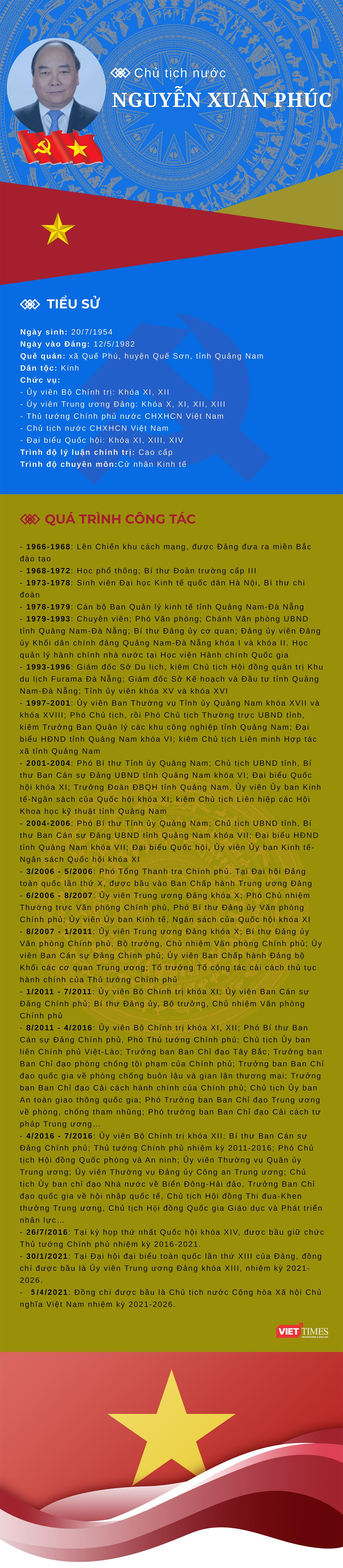 VietTimes –Sáng nay, 5/4, tại Nhà Quốc hội, ông Nguyễn Xuân Phúc - Ủy viên Bộ Chính trị, Thủ tướng Chính phủ được bầu làm Chủ tịch nước nhiệm kỳ 2021-2026. Đây là lần đầu tiên đương kim Thủ tướng Chính phủ làm Chủ tịch nước.