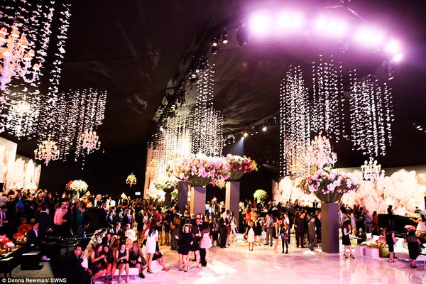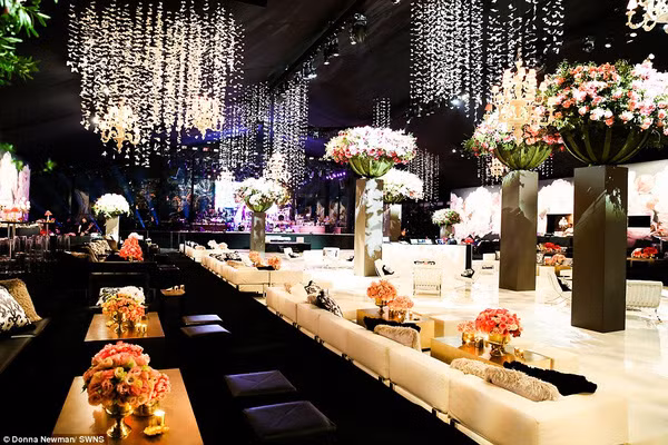 Không gian tổ chức tiệc sinh nhật của Maya Henry ngập tràn hoa tươi và pha lê long lanh.