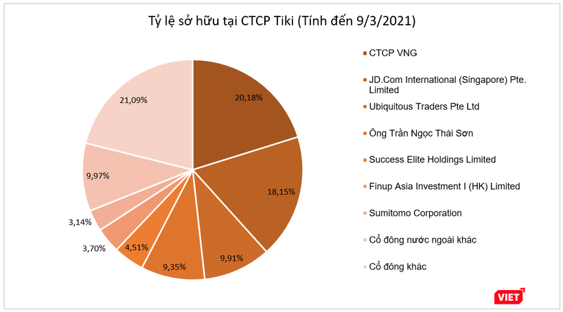 Về phía các cổ đông trong nước, tính đến cuối quý 1/2021, CTCP VNG sở hữu 20,18% vốn điều lệ. Ông Trần Ngọc Thái Sơn – nhà sáng lập kiêm tổng giám đốc Tiki – nắm giữ 2,1 triệu cổ phần, chiếm 9,3% vốn điều lệ.