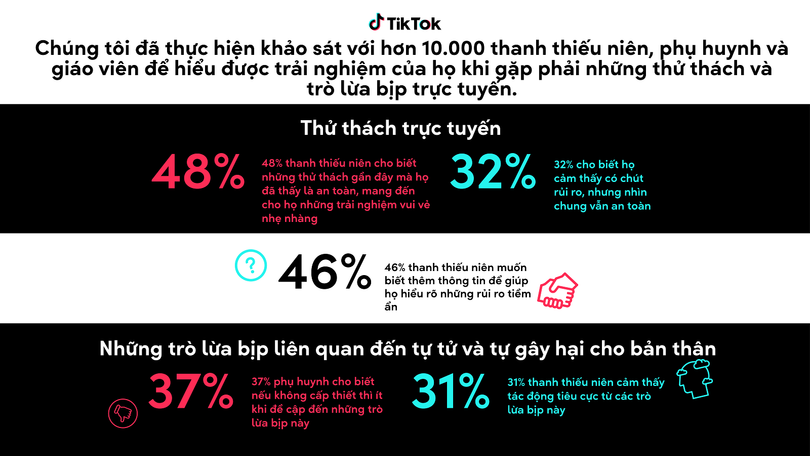 Đây là kết quả của một dự án quy mô toàn cầu, tìm hiểu về xu hướng hành vi của giới trẻ khi tham gia các thử thách tiềm ẩn những nguy hiểm, các trò lừa bịp có thể dẫn đến tự sát hoặc tự hại bản thân mà TikTok khởi động trong những tháng vừa qua.