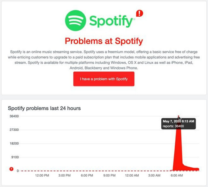 Ghi nhận trên Downdetector, báo cáo về các ứng dụng ngừng hoạt động tăng mạnh từ khoảng 5h sáng 7/5 (giờ Việt Nam), có thời điểm ghi nhận hơn 25.000 báo cáo cùng lúc.