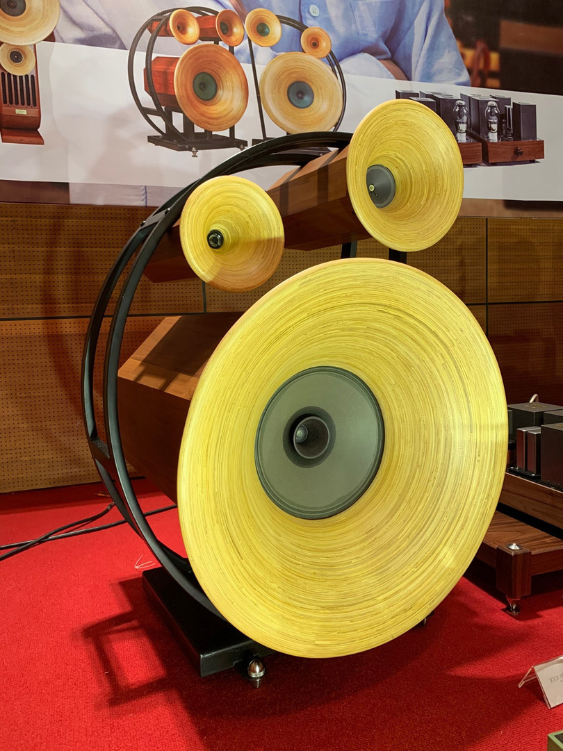 Những đôi loa kèn với vật liệu tre hoàn thiện thể hiện sự tự nhiên và được dát vàng sang trọng của Khang Audio đã tạo nét đặc trưng trong triển lãm AV Show lần này.