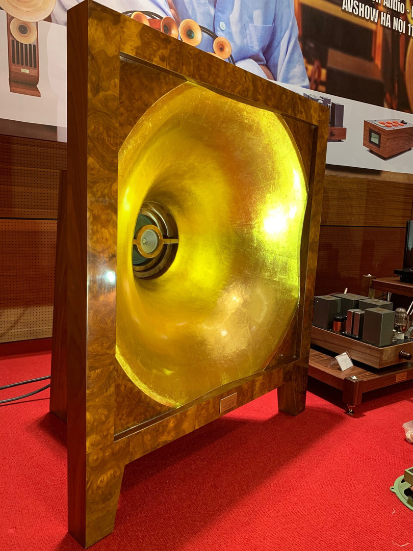 | Hệ thống loa kèn tre dát vàng được trình diễn tại AV Show 2019 Hà Nội |
