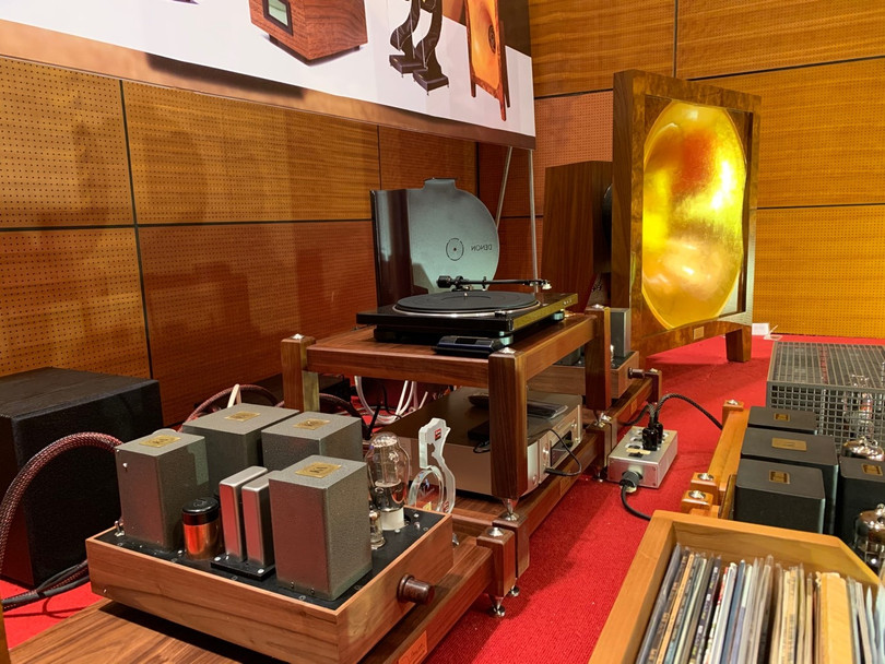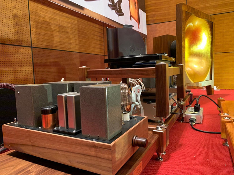 Hệ thống audio loa kèn tre dát vàng và amply 300b Mono Block