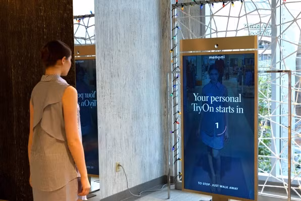 Salvador Nissi Vilcovsky, người sáng lập và giám đốc điều hành Gương ghi nhớ MemoMi, cho thấy công nghệ của ông giúp các thương hiệu kiểm soát và quản lý dữ liệu, giống như thu thập các phân tích trang web. Phòng thay đồ kết hợp gương MemoMi to với màn hình LCD 70 inch, máy tính và máy quay phim HD để quay video 8 giây.