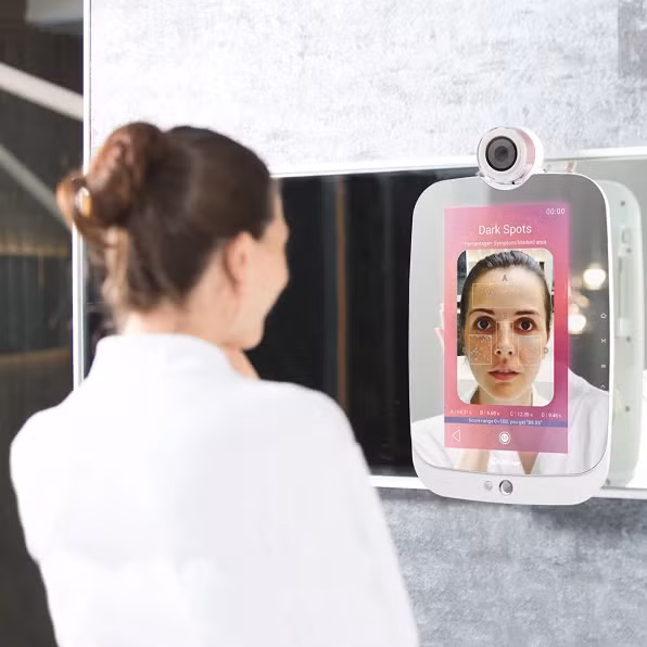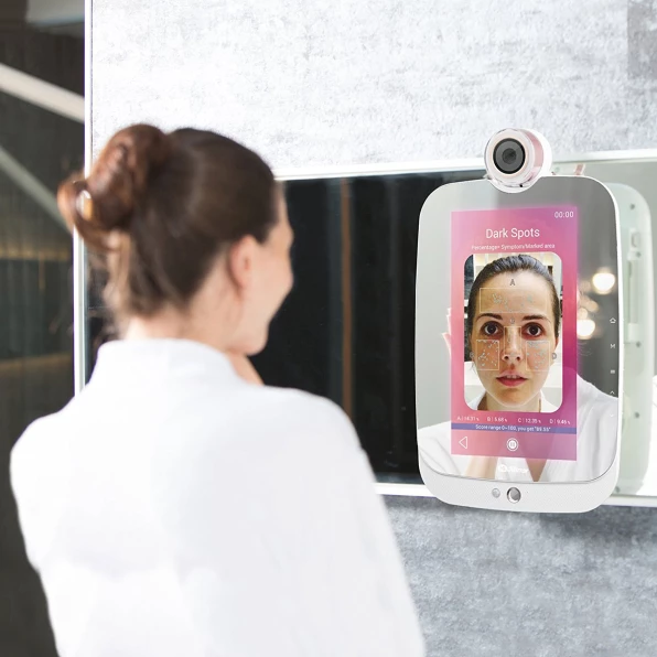 HiMirror mới (189 USD) hoạt động như một nhà tư vấn sắc đẹp hàng ngày: Với một chiếc camera trên đỉnh, nó sẽ thu gọn khuôn mặt của bạn vào gương và phân tích các nếp nhăn của da, các đốm đen, các nhược điểm trên khuân mặt và thậm chí cả các lỗ chân lông bị tắc nghẽn. Chiếc gương này có độ chống ẩm cao gấp đôi gương bình thường và hoạt động như một màn hình máy tính. Nó sử dụng trình điều khiển bằng giọng nói và sẽ chuyển hướng theo cử chỉ tay của bạn. Bạn không phải ấn bất kỳ nút nào lên gương, do đó tránh được việc hằn dấu vân tay trên gương. Sau khi đèn nhấp nháy vài lần, nó sẽ chuyển từ gương sang chế độ màn hình để cung cấp những bản tóm tắt hàng ngày và hàng tuần, qua biểu đồ dữ liệu trên màn hình về việc bạn đang già đi như thế nào và bạn có thể làm gì để chống lại sự tàn phá của thời gian. Ví dụ, nó thậm chí còn có thể dự báp thời tiết và bảo bạn bôi kem chống nắng với SPF 50 vào một ngày nắng nóng.