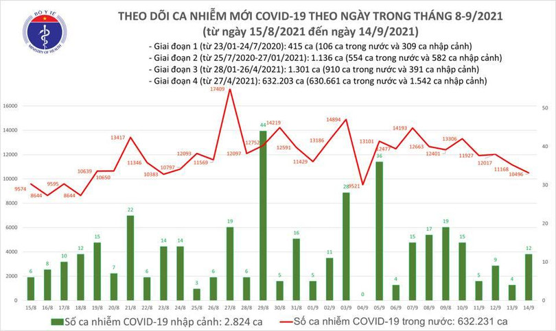 Đợt dịch thứ 4 (từ ngày 27/4/2021 đến nay): Số ca nhiễm mới ghi nhận trong nước là 630.661 ca, trong đó có 395.687 bệnh nhân đã được công bố khỏi bệnh.