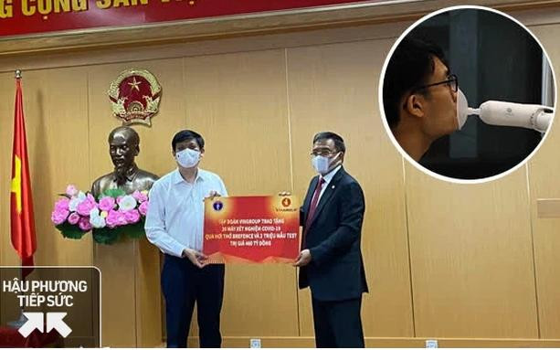 Vingroup sẽ ký hợp đồng mua thiết bị “BreFence Go COVID-19 Breath Test System” và trao tặng cho Bộ Y tế với tổng giá trị hơn 460 tỷ đồng (tương đương 20 triệu USD). Cụ thể gồm: 30 máy xét nghiệm Covid-19 qua hơi thở và vật tư tiêu hao phục vụ cho 2 triệu mẫu test.
