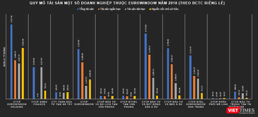 Báo cáo tài chính riêng lẻ cho thấy, kết thúc năm 2018, quy mô tổng tài sản của EWH đạt mức 7.027,8 tỷ đồng, cao gần gấp rưỡi so với con số tương ứng của CTCP Eurowindow.