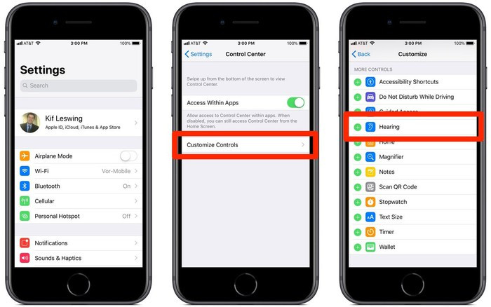 Để bật tính năng này, người dùng vào phần Cài đặt > Trung tâm kiểm soát> Tùy chỉnh điều khiển > Nghe. Tiếp đó, bạn truy cập vào trung tâm điều khiển và bật biểu tượng tai nghe. Tính năng "nghe trực tiếp" sẽ được kích hoạt.