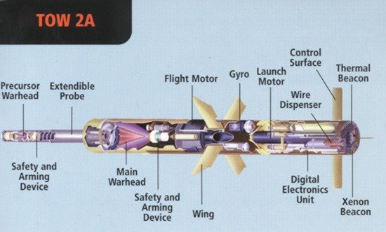 BGM-71E TOW 2A- tổng thể 21,6 kg; đầu đạn 5,9 kg