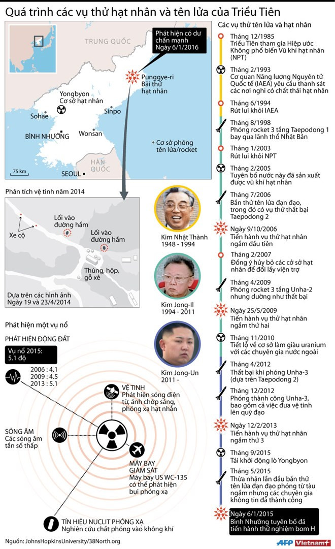 Trước đó, Triều Tiên đã tiến hành 3 vụ thử hạt nhân vào các năm 2006, 2009 và 2013.