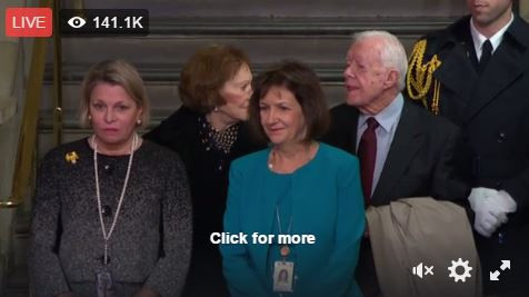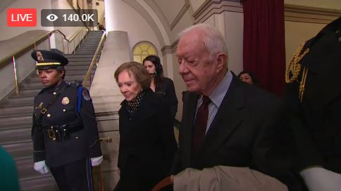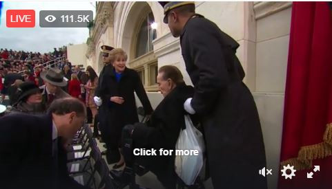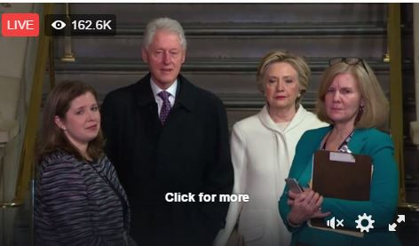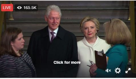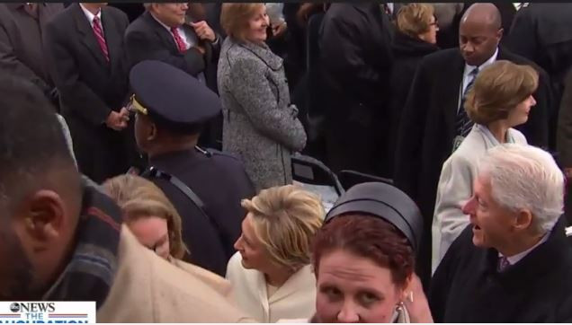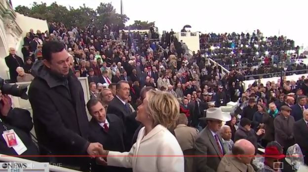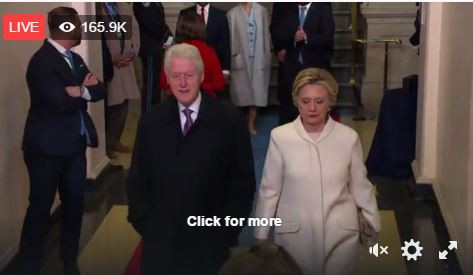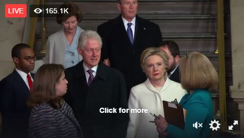 Vợ chồng bà Hillary Clinton xuất hiện và đang đứng cùng nhiều khách mời đặc biệt ở phía sau khán đài, những vị khách quan trọng có thể sẽ ra lễ đài khi Tổng thống Obama và ông Trump xuất hiện.