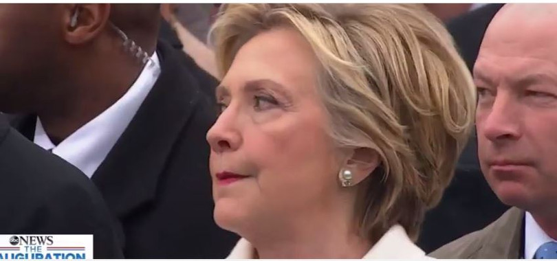 Nụ cười đầu tiên của bà Hillary Clinton kể từ lúc xuất hiện ở Nhà Trắng và sau khi lên lễ đài.
