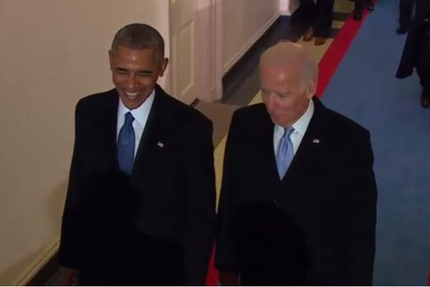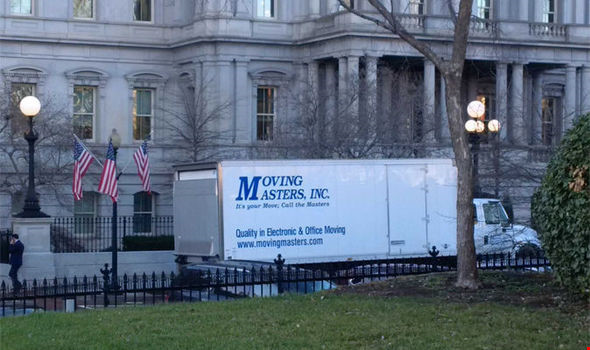 Hai đoàn xe tải, một đoàn phục vụ chuyển đồ cho Tổng thống mới sẽ tiến vào từ cửa trước. Còn tại cửa sau, đoàn xe tải phục vụ chuyển đồ của Tổng thống Obama đã rời khỏi Nhà Trắng.