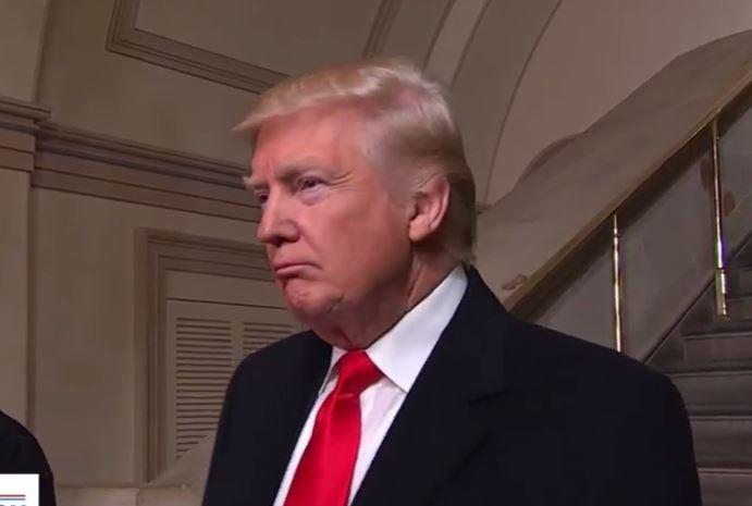 Ông Trump đang chăm chú lắng nghe những người điều hành, thực hiện các thủ tục theo quy định. Dường như ông khá sốt ruột với những thủ tục tốn nhiều thời gian, đôi lúc ông Trump lấy hơi thở dài.