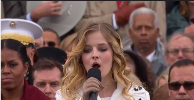 Toàn bộ quan chức, khách mời, người dân Mỹ có mặt tại lễ nhậm chức đứng dậy nghe và hát quốc ca Mỹ theo lời người dẫn xướng.