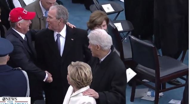 Khi vợ ông Obama xuất hiện bà Clinton đã nở nụ cười rất tươi bên cạnh chồng và gia đình nhà cựu Tổng thống Bush (Bush con).