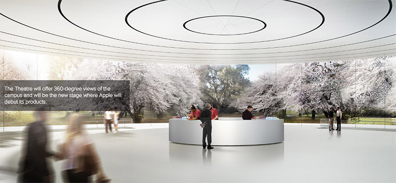 Trụ sở mới của Apple đã thu hút được rất nhiều sự chú ý trong giai đoạn phát triển, từ bản vẽ thiết kế, quá trình thi công cho đến những cảnh quay trên không từ máy bay không người lái. Apple đã chia sẻ với tờ Mashable những thông tin và hình ảnh của tổ hợp văn phòng mới của hãng, bao gồm cả nhà hát lớn có vai trò như một hội trường phục vụ cho việc ra mắt sản phẩm của Apple trong tương lai.