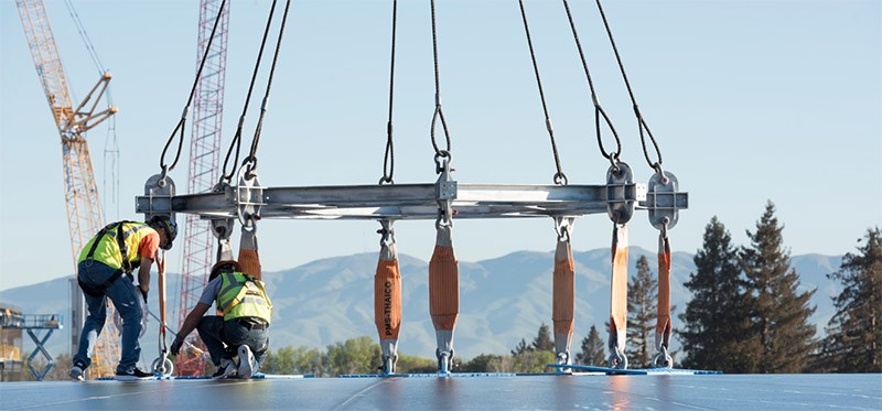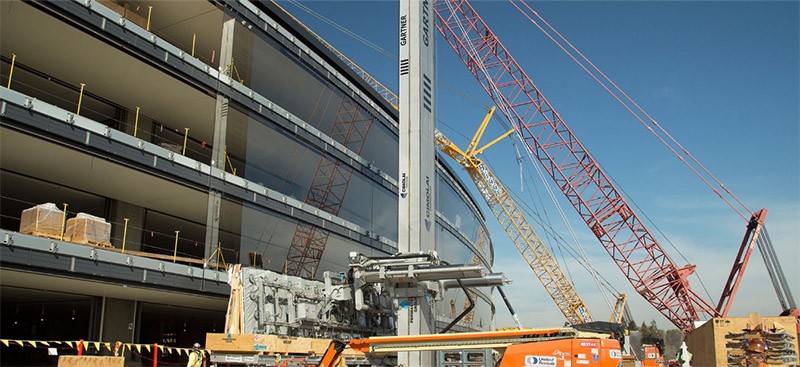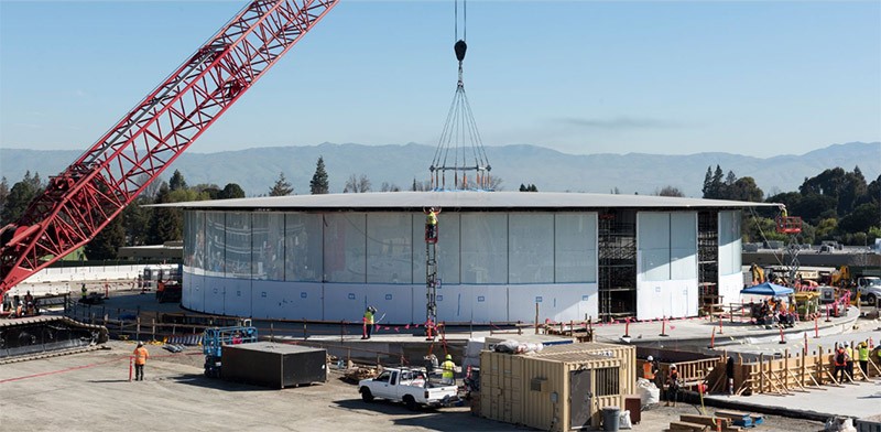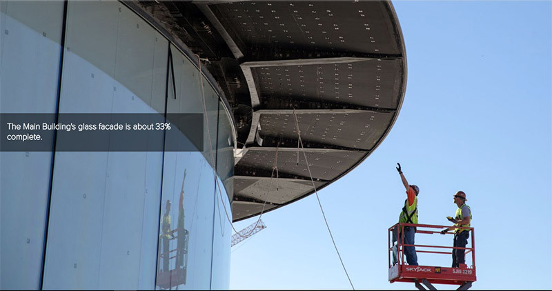 Việc lắp đặt các tấm kính lớn, cong bao xung quanh toà nhà chính tạo nên tổng thể cấu trúc như một “phi thuyền” đã gần hoàn tất. Để điều khiển việc nâng lên đặt xuống gần 900 tấm kính cong, có những loại có kích cỡ dài 14 mét và rộng 3,2 mét đòi hỏi sự hỗ trợ của những loại máy móc đặc thù. Đây không chỉ là một dự án lớn trong nước, Apple đã làm việc với những các công ty thiết kế, các nhà cung ứng nguyên vật liệu và các nhà cung cấp khác trên 19 quốc gia.