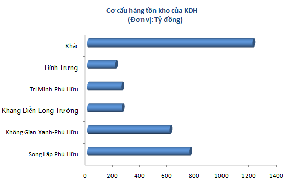 Giá trị hàng tồn kho của doanh nghiệp bất động sản bao gồm các chi phí mà doanh nghiệp chi ra cho các dự án bất động sản dùng để bán như giá trị quyền sử dụng đất, giá trị quỹ đất đã được bồi thường, chi phí san lấp mặt bằng và các chi phí đầu tư xây dựng phát sinh.