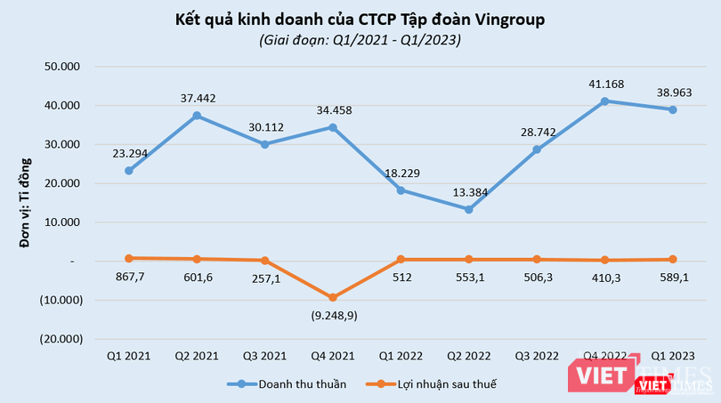 Các lĩnh vực cho thuê bất động sản đầu tư, dịch vụ khách sạn, du lịch, vui chơi giải trí, y tế và giáo dục đều ghi nhận tăng trưởng tốt. Lợi nhuận trước thuế quý 1/2023 đạt 4.264 tỉ đồng, tăng 121% so với cùng kỳ năm 2022; lợi nhuận sau thuế đạt 589,1 tỉ đồng.