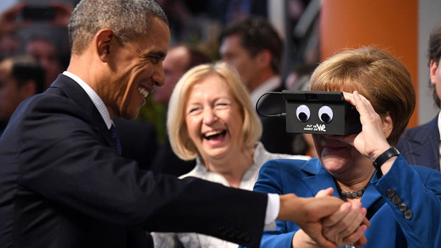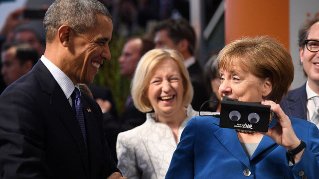 Cùng tham dự hội chợ thương mại công nghệ Hannover Messe cùng với ông Obama còn có cả Thủ tướng Đức Angela Merkel. Cả hai vị lãnh đào này đều tỏ ra thích thú với chiếc kính thực tế ảo.