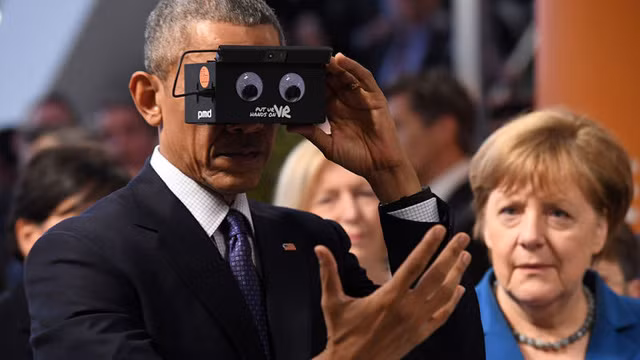 Mới đây, ông tiếp tục được tiếp xúc với công nghệ thực tế ảo tại hội chợ thương mại công nghệ Hannover Messe. Tại đây, Tổng thống Obama đã được thử một bộ kính thực tế ảo VR của Google, sử dụng cùng với một chiếc smartphone Android.