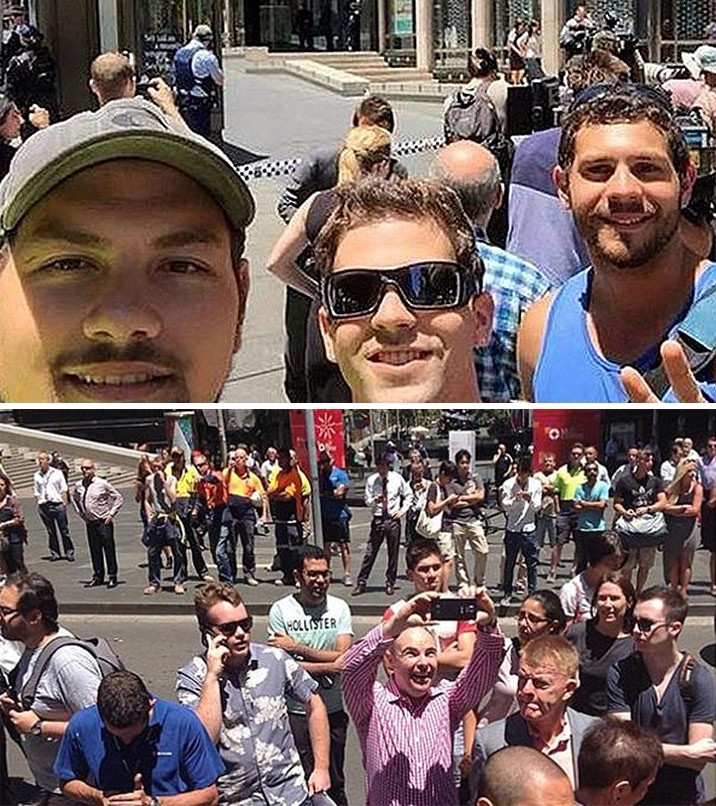Ngày 15-12-2014, một quán cà phê tại trung tâm thành phố Sydney đã xảy ra vụ bắt cóc con tin khiến 3 người thiệt mạng và nhiều người bị thương. Trong khi đó, một số người dân lại chụp ảnh vui vẻ trước hiện trường vụ bắt cóc.