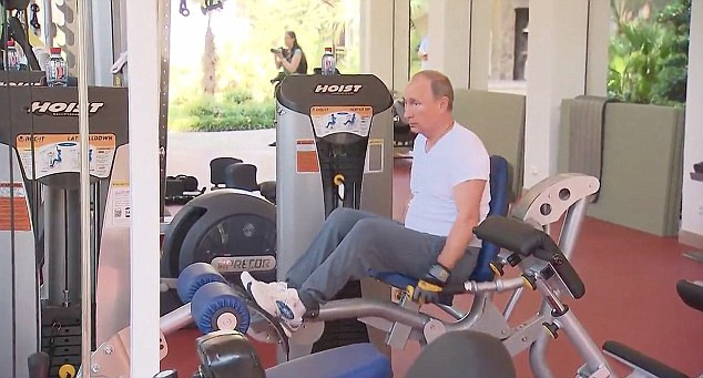 Hình ảnh "người sắt" 63 tuổi lần đầu tiên xuất hiện vào đầu tuần này khi ông rèn luyện trong phòng tập thể dục ở Sochi cùng với Thủ tướng Nga Dmitry Medvedev.