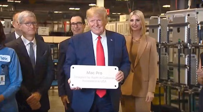 Tổng thống Donald Trump thăm nhà máy lắp ráp Mac Pro tại Austin, Texas, Mỹ hôm 20/11/2019. Ảnh: Internet