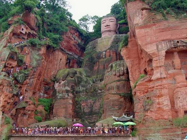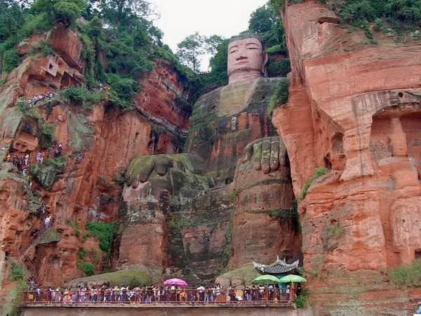 Được tạo ra từ thế kỷ thứ tám, bức tượng dùng để trấn an con sông ngay dưới chân. Tượng Phật khổng lồ Lạc Sơn là một trong những tuyệt tác kiến trúc vĩ đại nhất của Trung Quốc và cũng là Phật ngồi lớn nhất trên thế giới. Bức tượng được khắc thẳng vào vách đá ven sông, du khách có thể đi lên cầu thang từ chân Phật và đến đỉnh vách đá để tận hưởng góc nhìn tuyệt vời từ mọi góc độ.