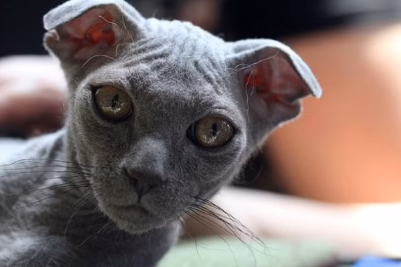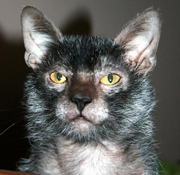 Donskoy là một con mèo không lông, nhăn nheo và xấu xí. Khuôn mặt của nó đặc biệt trông giống như một người ngoài hành tinh.