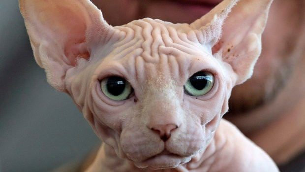 Giống mèo này có toàn bộ thân thể nhẵn nhụi, chỉ có một chút lông tơ, màu da lại trắng ởn. Chưa kể, lớp da toàn thân còn nhăn nheo, mặt quắt, nghiêm nghị, trông có phần đáng sợ. Tuy nhiên chúng được xếp vào một trong những loài mèo đắt nhất hành tinh.