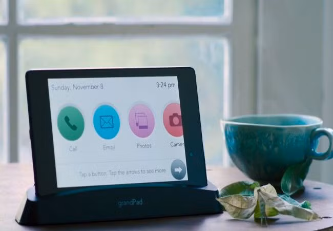 Cái tên GrandPad đã nói lên tính đơn giản của loại điện thoại này, đây là một chiếc smartphone/tablet giúp người lớn tuổi dễ dàng kết nối với người thân. Người dùng gần như không phải sành gì nhiều về chức năng tablet hay smartphone như các thiết bị Android hay iOS yêu cầu. GrandPad có màn hình 8 inch, Full HD với các nút trên menu lớn để dễ dàng điều hướng, và được kết nối qua mạng 4G LTE trên nền tảng Consumer hoặc qua Wi-Fi. Thiết bị này cũng hỗ trợ dock sạc không dây, vì thế người già không phải bực mình khi không tìm thấy những ổ cắm nhỏ.