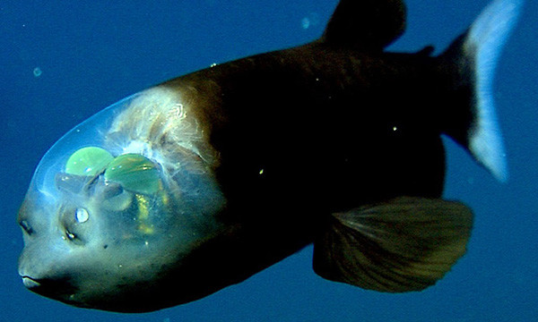Sinh vật biển này có một cái đầu trong suốt khiến cho đôi mắt to lồi của nó càng nổi bật hơn. Hãy thử tưởng tượng, bạn đang bơi dưới đáy đại dương sâu thẳm và chỉ thấy 1 cái đầu trong suốt với 2 con mắt trôi về phía bạn. Thật đáng sợ đúng không nào?