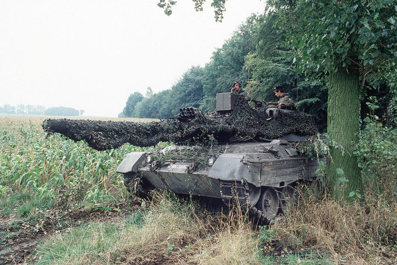Các quân nhân Liên bang Đức trên chiếc xe tăng Leopard I được ngụy trang trong diễn tập Exercise Reforger, ngày 28.09, 1983.