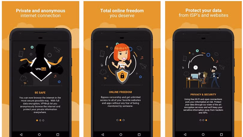 VPNhub là dịch vụ VPN đến từ Pornhub với băng thông miễn phí và không giới hạn, không ghi lại bất kỳ dữ liệu nào của người dùng cũng như không hạn chế về mặt địa lý. Với VPNhub, bạn có quyền truy cập VPN “miễn phí và không giới hạn” với một số thiết lập quyền riêng tư bao gồm ẩn IP và tăng cường bảo mật khi sử dụng WiFi công cộng.