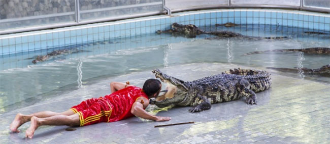 Nghệ thuật trình diễn có thể yêu cầu bạn vào trong hàm của cá sấu. Các diễn viên xiếc phải đặt các bộ phận cơ thể của họ giữa hàm của cá sấu, chơi với đuôi của chúng và làm đủ mọi thứ điên rồ. Hãy nhớ rằng cá sấu không chỉ nằm ở đó mà tích cực di chuyển và phản ứng.