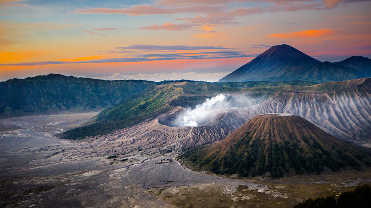 Thoạt nhìn, nơi này trông rất mơ mộng, nhưng thực tế, có một núi lửa vẫn còn hoạt động bên trong. Núi Bromo nằm bên trong Vườn Quốc gia Bromo Tengger. Đây là ngọn núi lửa hoạt động duy nhất còn lại ở Indonesia và đến nay, nó là điểm du lịch nổi tiếng do nhờ vẻ đẹp huyền diệu và các điểm tham quan kỳ thú xung quanh.
