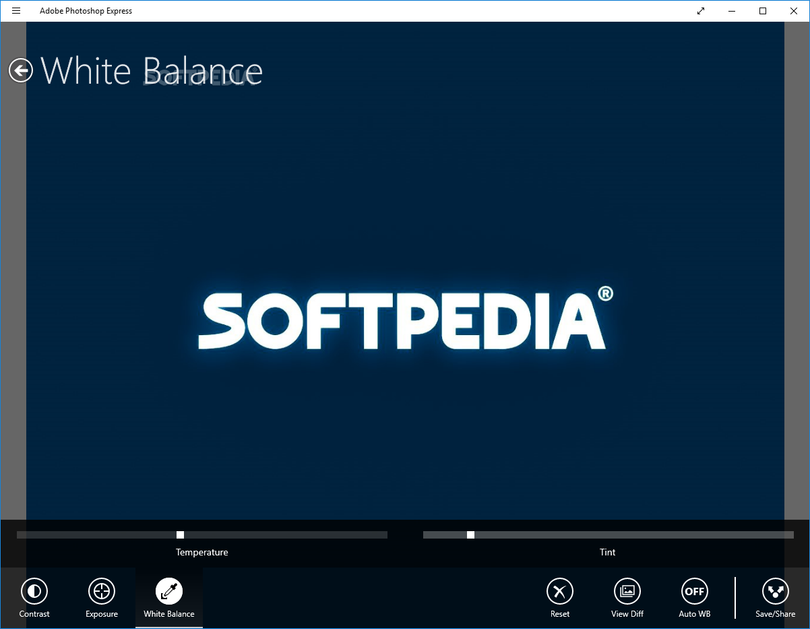 Photoshop Express có các thanh trượt cho bạn tự động điều chỉnh tương phản (contrast), độ phơi sáng (exposure) và cân bằng trắng (white balance), cùng nhiều lựa chọn tự động khác chỉ bằng một cú nhấn chuột. Sau khi hài lòng với kết quả, bạn có thể lưu ảnh vào PC hoặc chia sẻ qua Facebook.