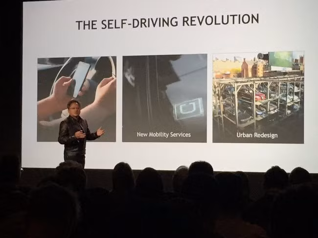 Xuất hiện trên sân khấu triển lãm CES 2016 chính là Tổng giám đốc Jenn-Hsun Huang của Nvidia