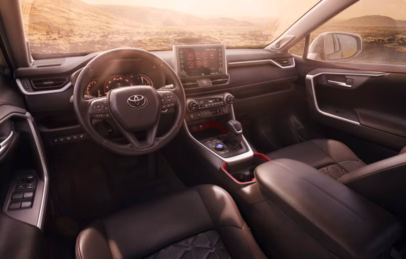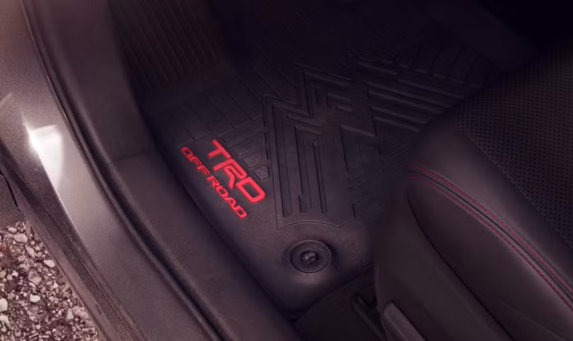 Bên trong, vật liệu làm thảm lót sàn có thể chống chịu được mọi điều kiện thời tiết nổi bật với logo TRD Offroad màu đỏ. Ghế ngồi được bọc bằng chất liệu giả da Softex vừa nhẹ hơn da và có độ bền cao hơn.