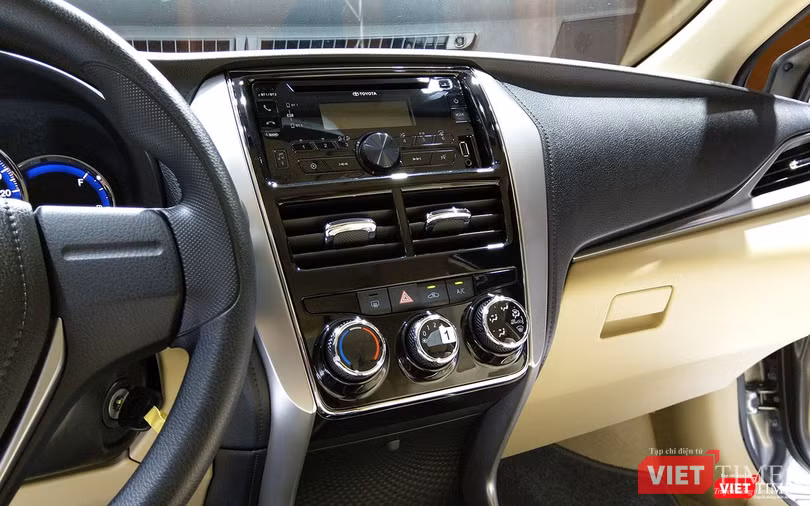 Bên trong, khoang lái của Vios 2018 được phát triển dựa trên các ưu điểm của người tiền nhiệm. Nhựa cứng vẫn là vật liệu chủ đạo. Bảng điều khiển trung tâm vẫn là thiết kế quen thuộc với hệ thống giải trí và hệ thống điều hòa được tách biệt bởi khe gió, tạo điểm nhấn bằng các chi tiết mạ bạc