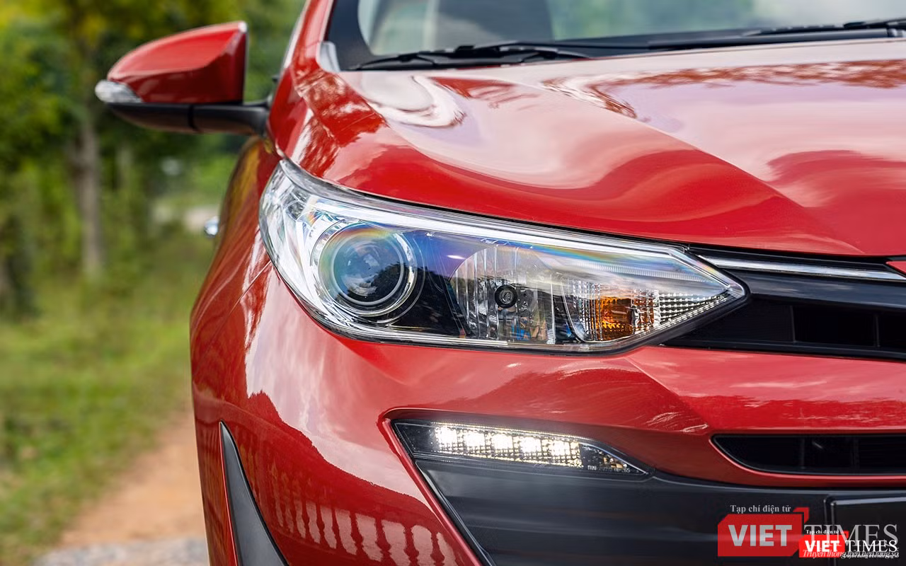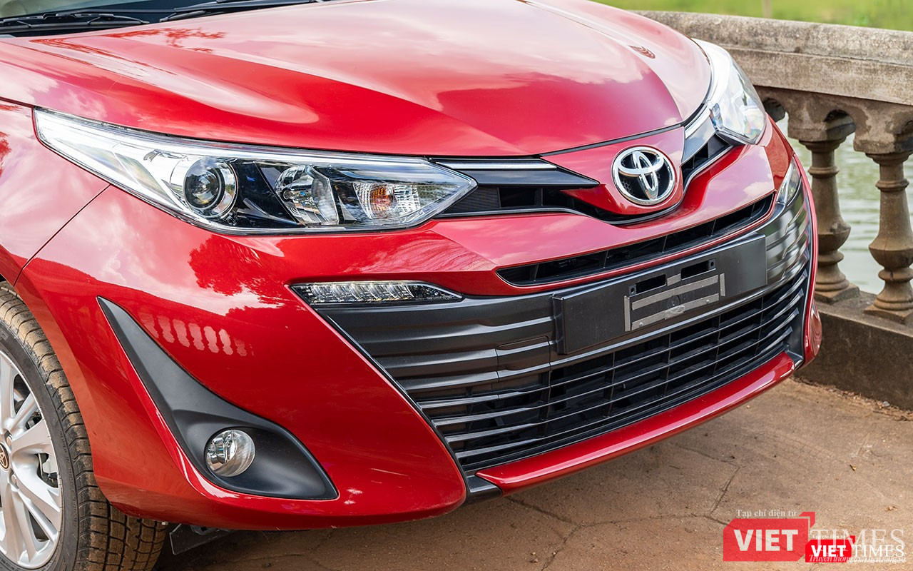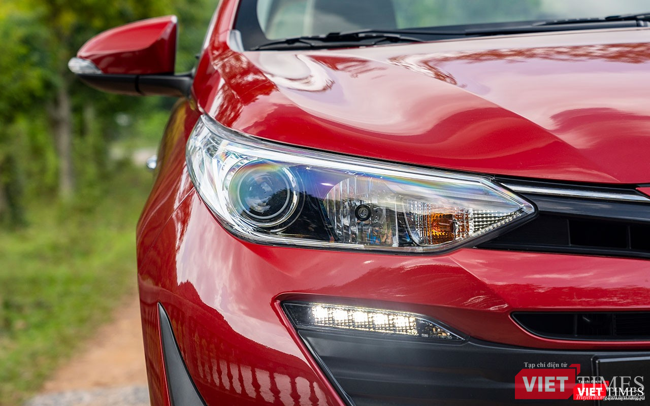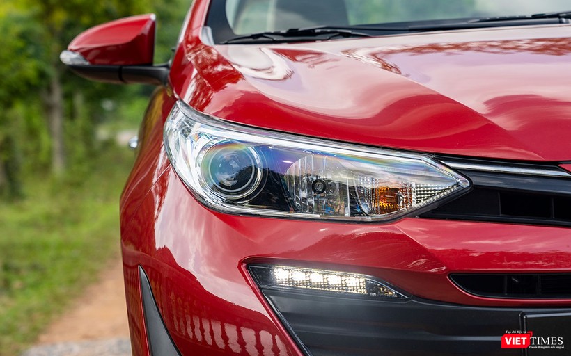Điểm mà tôi hài lòng với thiết kế phần đầu của Toyota Vios 2018 nằm ở cụm đèn chiếu sáng trước đã tách biệt hệ thống chiếu sáng pha/cos và sự hiện diện của dải LED chiếu sáng ngày được bố trí ngay phía dưới. Đèn halogen với đèn cos projector vẫn là trang bị tiêu chuẩn trên phiên bản cao cấp của mẫu xe này. Chỉ có điều dải LED chiếu sáng ngày dường như hơi lạc điệu so với thiết kế của cụm đèn pha.