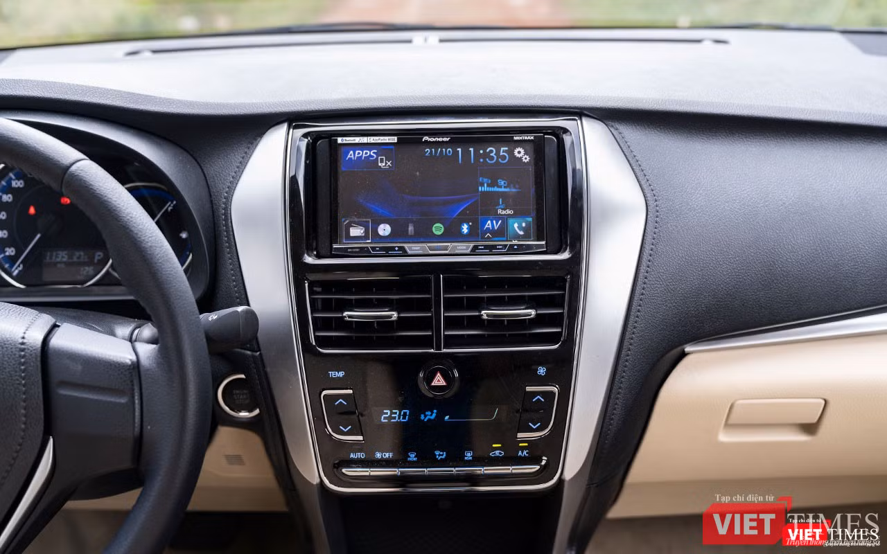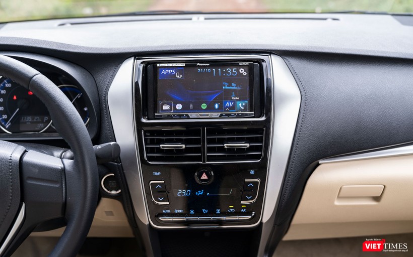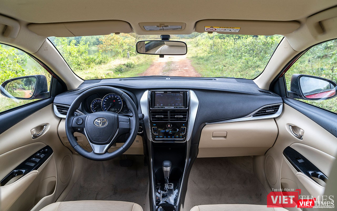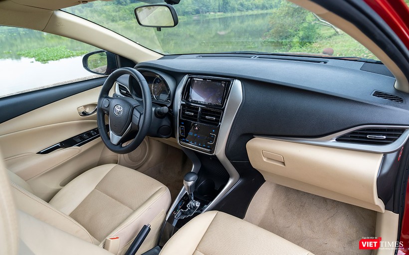 Toàn bộ bề mặt bảng táp-lô là sự hiện diện của vật liệu nhựa cứng với các đường giả chỉ khâu chạy bao quanh khu vực bảng điều khiển trung tâm. Sự kết hợp giữa các mảng màu đen, xám bạc và vang be tạo cho khoang lái của Vios 2018 có được cảm quan về sự rộng rãi và cabin được xây dựng chất lượng cao.