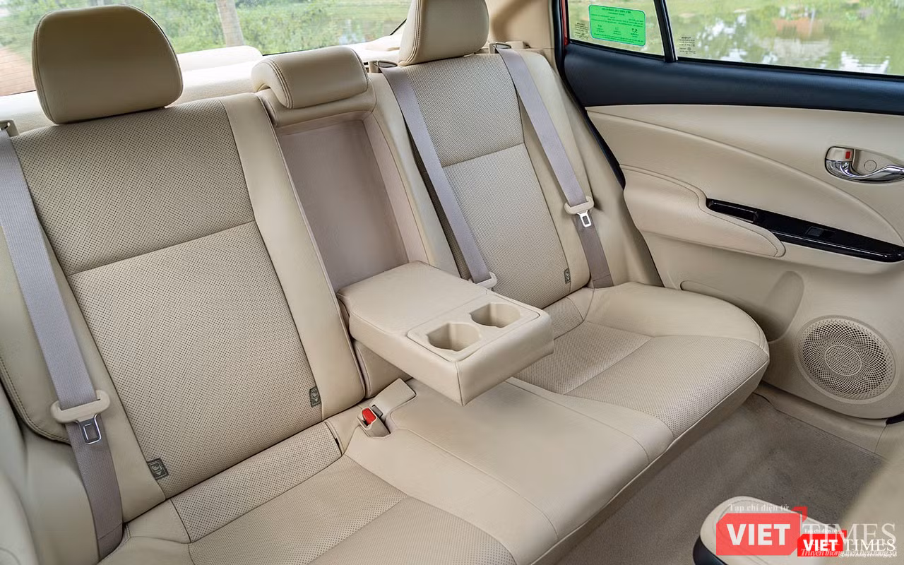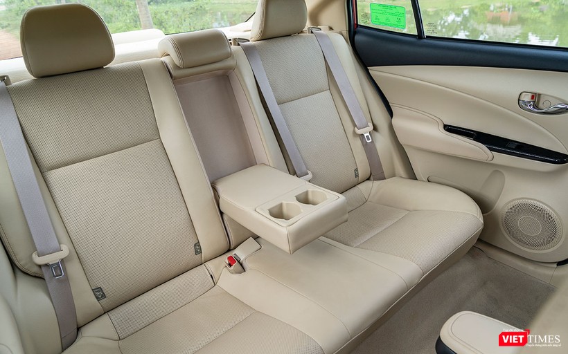 Không gian của Toyota Vios 2018 đủ chỗ cho 4 người trưởng thành ngồi một cách thoải mái, nhưng nếu ngồi đủ 5 người sẽ là một chút chật chội dành cho hàng ghế phía sau. Rất may, sàn xe gần như bằng phẳng nên người ngồi ở giữa sẽ có chỗ để chân tốt hơn. Tiếc là nó chưa được trang bị cửa gió dành cho hàng ghế sau. Hiện tại, Honda City chính là mẫu xe duy nhất có được trang bị này.